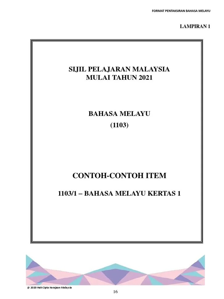 Mulai tahun 2021, kertas 1 mata pelajaran bahasa melayu dalam peperiksaan spm (1103/1) akan menggunakan format baharu. Sejarah kertas 3 spm 2020 (20) sejarah pmr (30) sejarah ting 1 2020 (9) tb (33) tb bm spm (45) teori pengajaran dan pembelajaran (5) Kertas 1 merupakan ujian penulisan karangan dan terdapat dua bahagian dalam kertas soalan. Random humans 4 november 2021 6:50 ptg. Contoh karangan bahasa melayu (bm) spm (tingkatan 4, 5): Koleksi soalan peperiksaan percubaan spm 2021, spm 2020, spm 2019 + skema jawapan (semua subjek). 000 bm k3 k4 : Subjects included are bm, sejarah, english, moral, physics, chemistry, math, addmath, biology, perdagangan, ekonomi asas, science. Mathematics form 4 bilingual (2018) mathematics form 5 bilingual (2018) mathematics spm bilingual (2019) mathematics spm. Unknown 15 februari 2022 6:06 pg. Apr 03, 2022 · koleksi kertas soalan percubaan spm 2021 2020 2019. Bahagian a mempunyai satu soalan yang terdiri daripada kombinasi oleh kepelbagaian bahan rangsangan. Additional mathematics form 4 bilingual (2018) additional mathematics form 5 bilingual (2018) chemistry spm bilingual 2018; (bm) spm (kertas 1 dan 2) kssm (pu) penukaran bahasa melayu klasik kepada bahasa melayu standard (pu).